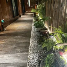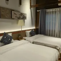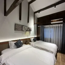 Отель расположен в живописном месте, и его владелец предлагает теплый прием и трансфер от станции высокоскоростной железной дороги. Отель тщательно оформлен, чистый и гигиеничный, с новыми удобствами: вы можете принять ванну, предоставить бесплатные сумки для ванны и интеллектуальное голосовое управление в номере. Клейкие рисовые пельмени, испеченные начальницей, очень вкусны. Здесь удобно ходить, чтобы посмотреть водопады и живописные представления.Удобства в живописной местности следует считать очень хорошими.