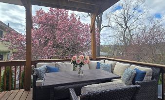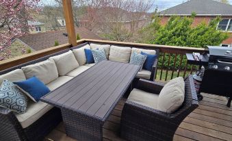This charming home offers 2 bedrooms, 1 bathroom, and a spacious outdoor deck complete with a BBQ grill, and patio couch with a table—perfect for relaxing. Enjoy the convenience of free on-street parking with no alternate side restrictions.
