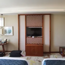 The room is very big and comfortable. Except the bathroom is translucent even with the curtains on. If u switch on the bathroom light, u can see very clearly what is the person doing inside. We hv to switch the light off to take shower n pi.