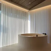 Дизайн гостиничного номера действительно лучше, чем на фотографиях. Он сделан из дерева и молочно-белого цвета. Все принадлежности от элитных брендов. Он настолько удобен, что не хочется никуда идти. .Я просто хочу полежать в отеле и посмотреть на заснеженные горы.