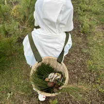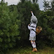 Мое любимое занятие — собирать грибы из сосновых шишек, поэтому я сделала серию «Зеленая сосна» своими руками. Еще был очень милый плиточный кот, которого я принес домой.