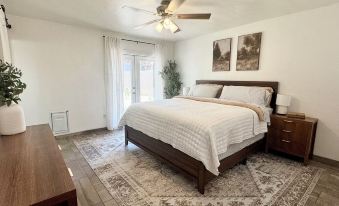Outside, enjoy a peaceful and private backyard retreat complete with a Traeger grill, perfect for barbecues and outdoor dining. Whether you're relaxing under the stars or enjoying a morning coffee, this backyard is the ideal place to unwind.