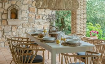 What a charming place set in a large olive cove overlooking the sea. The stone villas were magical - very charming, clean and contemporary furnished. The outdoor restaurant at the pool overlooking the sea served the best food we had on the island and very interaction with the staff was very friendly and helpful. There is a small beach within walking distance, and the pool has plenty of sun beds in the shade of the olive trees - a very idyllic place. Thank you for the wonderful time with you - we can only recommend this place.