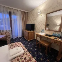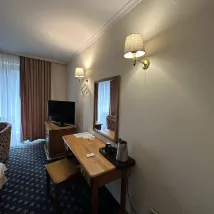 Spent a night here last weekend, last minute decision to visit Zakopane and places we'd stayed before had no spaces but we found this place and it was beautiful. Our room had amazing windows to look at the views, two bathrooms and comfy beds, we didn't get the chance to eat or visit the bar but it looked really nice and the hotel receptionist was really friendly and helpful. It's in a great location and would definitely stay again
