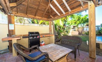 The villa is equipped with all the essentials from towels and linens, to shampoo and soaps, and all of the kitchen equipment needed to whip up a gourmet meal. For play time, there are board games, cornhole set, paddle boards, and plenty of entertaining spaces to enjoy. At night, the entire property lights up with a warm inviting glow. String lights hang from the pergolas provide your own personal shining stars and the bubble glass sconce lights shimmer and twinkle. We've created the perfect place to Rejuvenate, Relax, Indulge, Laugh, Dance, or Let Go.