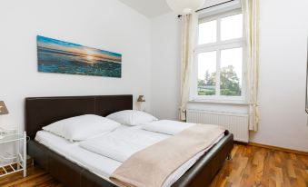 Apartment block "Villa Waldblume". In the resort 100 m from the centre of Zempin, 400 m from the sea, 400 m from the beach. In the house: central heating system. Parking on the premises. Supermarket 3.3 km, restaurant 130 m, bakery, café 400 m, bus stop 300 m, railway station 700 m, thermal baths "Bernsteintherme" 3.8 km. Golf course (18 hole) 21 km, surf school 3.8 km, tennis 3.6 km, minigolf 3.7 km. "Sonnenblume", 2-room apartment 67 m2 on 1st floor. Modern and stylish furnishings: living room with 1 sofabed and satellite TV (flat screen), radio. 1 room with 1 double bed. Kitchen (4 hot plates, oven, dishwasher, toaster, kettle, electric coffee machine) with dining nook. Shower/WC. Sitting area. Facilities: children's high chair, baby cot. Internet (WiFi, free). Please note: non-smokers only. Maximum 1 pet/ dog allowed. Smoke alarm.