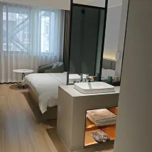 房間乾淨衞生,設計簡約時尚,智能設備齊全,住起來特別方便,前台服務專業高效,周邊美食眾多,絕對是旅行住宿的優質選擇!