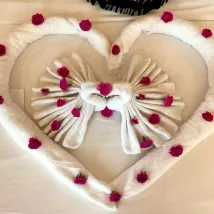 Перед заездом мы позвонили на ресепшн, чтобы сообщить, что мы молодожены. К нашему приятному удивлению, по прибытии нам не только повысили категорию номера, но и трогательно его украсили – это было невероятно мило! В номере была большая ванна, очень просторная ванная комната с отдельной душевой зоной, а также стиральная машина. В целом, мы остались очень довольны пребыванием. За такую цену это просто находка! Настоятельно рекомендуем!