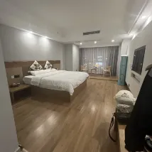Отель расположен в переоборудованном здании, где также находятся несколько других подобных гостиниц. Обслуживание на стойке регистрации отличное, персонал терпеливо объяснил все вопросы. Главное преимущество – это удобное расположение: рядом станция канатной дороги Тяньмэньшань и центральный автовокзал, что обеспечивает отличную транспортную доступность. На первом этаже есть ресторан, где подают завтрак.