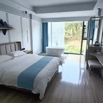 Я проезжал мимо Чжанцзяцзе, чтобы переночевать, и выбрал этот магазин. Он превзошел мои ожидания, и мое пребывание было отличным. Хозяин был теплым и заботливым. Комната была большая, ванная комната была отделена от влажной и сухой, было чисто и аккуратно. Окна от пола до потолка обеспечивали великолепный вид. Обедать в магазине было удобно и экономично.