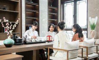 Zhangshu Moshang Light Luxury Hotel (Three Palace Store) is affiliated to Moshang Hotel Group: light luxury brand, with Song style tea and elegant cultural high-end hotel. In terms of design, adhering to the concept of "one store, one design", absorbing local culture to create a characteristic lobby, featuring "light Chinese-style Song minimalist Jiangnan style", creating a "tide" space full of "tangs, corridors, pavilions, houses, feasts, raccoons, realms" Song "tide" spaces full of oriental beauty. The hotel is located on the first floor of Building 31, Sanhuangli Cultural District, Zhangshu City, Yichun City, Jiangxi Province. It is only one step away from Sanhuangli Cultural District and Ganjiang River. The surrounding restaurants, bars and night markets allow you to eat, drink and have fun. The hotel is equipped with a free tea table, free Hanfu photo punch-in experience, small intelligent control in the room, dry and wet separation of the washing area, and a smart toilet, providing a casual living space for everyone who yearns for a comfortable life.