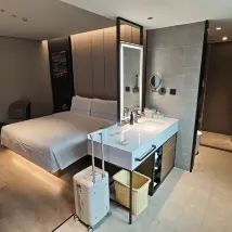 A very clean hotel situated just along jinshawang beach. Right beside the big Sheraton hotel. Quiet at night. Some oyster restaurant around the corner. Good quality and diverse breakfast provided, typical of Atour hotels. Attractions nearby need didi tramsport.