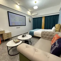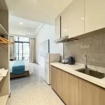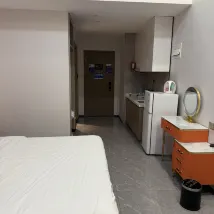 The apartment is in a good location, and new lobby, corridor but a bit smoking smell in corridor and room. The room looked not old and provided necessary stuff there but shower cabinet looked dirty. It is clean enough, it is worth to stay there.