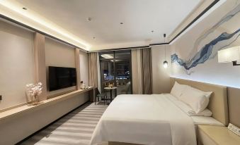 酒店房間應該是新裝修,電梯、房間設施非常新淨👍我住大床房沒有窗戶,可是沒什麼問題,還有大投屏幕,看電影聽音樂,非常享受,床品也非常舒服,枕頭有2款,一款類似太空棉,這個價錢絕對超值!