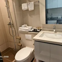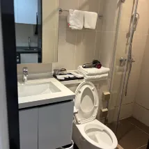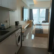 It is not a hotel but a serviced apartment in an office block: The name Kerry Bay Hotel is not shown even at the entrance f the building, we could only tried to get in and go up to see if there is a reception. The lobby and corridor had no air conditioning, we managed to check in at a some room at a corner with a signage at its door. The lady took us to another floor where it appeared to be unoccupied and still undergoing renovation, some rooms are unfurnished. The room was clean and facilities were ok, but there is no washing machine (as told, the rooms either have fridge or washing machine?!). The cleaning lady replenished the basic stuff and clean the kitchenette quite well.