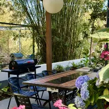 Весь гостевой дом очень большой, с очень со вкусом подобранным ландшафтом и планировкой. Можно попить чаю, поболтать, покормить рыбок, и говорят, что можно также пожарить шашлык. Хозяйка теплая и дружелюбная, а завтрак восхитительный. Это место стоит посетить снова.