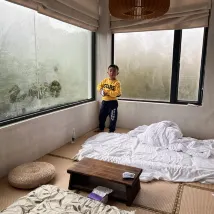 Очень хороший опыт проживания, расположение B&B на склоне горы. Мы остановились в номере Qichi на 4 этаже. Благодаря большому дизайну окон у нас был прекрасный вид. В номере есть большая кровать и просторная комната с татами, в которой не только комфортно жить, но и где дети могут весело провести время.