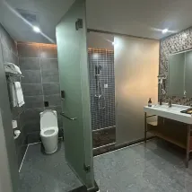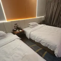 Мы приехали заселяться глубокой ночью. Обслуживание в отеле было превосходным, персонал говорил тихо и очень вежливо. Завтрак тоже порадовал: хотя ассортимент и не очень большой, но всё необходимое было в наличии, и часы работы удобные. Каша «Пидань шоужоу» (с солёным утиным яйцом и постной свининой) была невероятно вкусной. Нам бесплатно забронировали трансфер до парка Чанлун – шестиместный бизнес-минивэн. Мы ехали одни, и два наших чемодана легко поместились. Прямо рядом – торговая улица, где есть всё: кофейни, заведения общепита, круглосуточные магазины. Очень удобно!