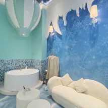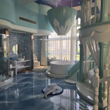 Мой ребенок так долго ждал поездки в этот отель, и наконец-то мы здесь остановились! Фотографии в интернете были прекрасны, но сам отель оказался даже лучше, чем я себе представляла. Номер был просторный, с высокими потолками, яркими и реалистичными цветами, и абсолютно не было никаких неприятных запахов. В номере было все необходимое: двухъярусная кровать, лестница, горка, палатка и небольшой велосипед. Мой ребенок совсем не хотел выходить из номера, играл всю ночь. Потом они приняли чудесную горячую ванну в огромной ванне и крепко уснули. В номере был голосовой помощник Baidu, позволяющий управлять кондиционером, шторами, освещением и музыкой голосом. Также был большой проекционный экран для показа мультфильмов детям. Предоставлялись туалетные принадлежности, тапочки, халаты и другие удобства. Персонал, включая «дворец-медузу», был невероятно приветливым и внимательным. Бронирование за день вперед даже позволило им организовать транспорт, что было очень удобно. В следующий раз мы обязательно остановимся здесь снова, даже в номерах другого типа!