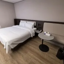 Очень хорошие впечатления от проживания. Отель расположен в прекрасном месте, прямо у входа проходит главная дорога Хуэйдун, что делает его очень удобным для поездок в любую точку города. Поблизости практически нет мест, где можно поесть, но если пройти на восток около 5 минут, то их будет много. Неподалеку к западу от отеля имеется кооперативная парковка. Мест для парковки много, и припарковаться можно без проблем, не беспокоясь о том, что не найдется свободного места. В комнате использована относительно новая версия стиля интерьера Хантинг, которая отличается теплотой, простотой, комфортом и практичностью. Большое количество непрактичных объектов было исключено, что позволило создать лучшее ощущение пространства на относительно ограниченной территории. Постельные принадлежности удобные, звукоизоляция хорошая, горячей воды достаточно, а это именно то, что больше всего ценят гости. Но единственный недостаток заключается в том, что упрощение объектов кажется слишком большим. В комнате слишком мало столешниц. Помимо круглого стола размером с журнальный столик, здесь есть только две небольшие прикроватные тумбочки. В противном случае вещи можно будет положить только на стулья, чего недостаточно для двоих. На самом деле, вы можете подумать о том, чтобы поставить под телевизором длинный и узкий столик, чтобы разместить на нем некоторые удобные предметы, а также сумки и тому подобное.