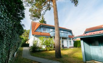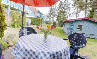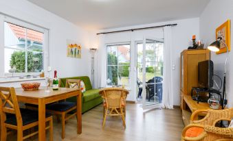 Apartment house. On the outskirts, 1.2 km from the centre of Zinnowitz, 800 m from the sea, 800 m from the beach. In the house: central heating system. Parking on the premises. Supermarket 600 m, restaurant 500 m, bakery 1.1 km, café 1.1 km, bus stop 280 m, railway station 1.2 km, sandy beach 800 m, thermal baths "Bernsteintherme" 1.1 km. Marina 3.1 km, golf course (18 hole) 25 km, surf school 1.1 km, tennis 1.4 km, minigolf 1.1 km. "Jacobs", 3-room apartment 45 m2, on the ground floor. Beautiful and cosy furnishings: living/dining room with cable TV (flat screen), radio. Exit to the terrace. 1 room with 1 double bed (160 cm, length 200 cm). 1 room with 1 x 1 bunk beds (90 cm, length 200 cm). Kitchenette (oven, dishwasher, 2 ceramic glass hob hotplates, toaster, kettle, microwave, electric coffee machine). Shower/WC. Terrace. Terrace furniture. Facilities: children's high chair, baby cot. Internet (WiFi, free). Parking (1 car). Please note: non-smokers only. Smoke alarm.