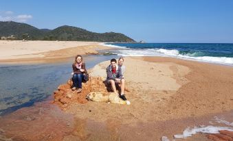 Der Strand (in 2 Min) ist traumhaft, vor allem ruhig, nicht überlaufen und ideal für Kinder aller Altersgruppen. Da der Strand nicht öffentlich betrieben wird, gibt es keine Toiletten. Und dafür sind Hunde erlaubt, das ist ein Vor-oder Nachteil, wie man es sieht. Gerade durch den Fluss ergeben sich viele Möglichkeiten für Kinder zum spielen, schnorcheln, paddeln etc. Ein fussläufiges, zu empfehlendes Restaurant, Einkaufsmöglichkeiten ca 15Min mit dem Auto, also gut planen. Bonifacio und Porto-Veccio ein Muss!