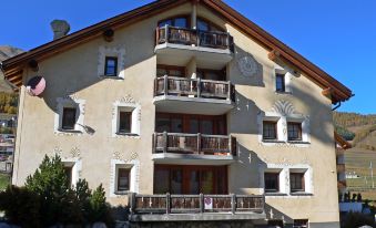 Zuoz 17 km from St.Moritz: Beautiful apartment house "Chesa Mezzaun". In the resort, 17 km from the lake, 1 km from the skiing area, 500 m from the river, in a cul-de-sac. In the complex: storage room for bicycles, storage room for skis, central heating system, washing machine, tumble dryer (for shared use). Communal covered parking. Shop 400 m, grocery, supermarket, restaurant 400 m, bakery 550 m, café 550 m, bicycle rental 700 m, bus stop "Staziun" 400 m, railway station "Zuoz", indoor swimming pool 18 km, lake St. Moritzer See 17 km. Golf course (18 hole) 700 m, surf school 23 km, tennis 1 km, indoor tennis centre 19 km, minigolf 18 km, riding stable 4 km, walking paths from the house 400 m, cycle lane 700 m, cable car 15 km, ski lift 900 m, slopes 900 m, ski rental 900 m, ski bus stop 200 m, ski school, children's ski school 800 m, sled run 1 km, cross country ski track 700 m, ice rink 800 m, children's playground 700 m. Nearby attractions: Nationalparkzentrum in Zernez 17 km, Caferama Badilatti 700 m. Well-known ski regions can easily be reached: Zuoz 900 m, Corviglia 15 km, Diavolezza - Lagalb 28 km. Well-known lakes can easily be reached: St. Moritzer See 17 km, Silvaplaner See 23 km, Silser See 29 km. Hiking paths: Schweizer Nationalpark / Val Trupchun, Via Engiadina, Muottas Muragl. Please note: ski bus (free of charge). Free ski bus service to the ski region Zuoz. Please note: railway line 50 m from the property. "Chesa Mezzaun", 3-room apartment 98 m2, on the ground floor. Very comfortable and beautiful furnishings: living/dining room with open-hearth fireplace and TV. Exit to the balcony, south facing position. 1 double bedroom with 1 french bed (1 x 160 cm, length 195 cm). 1 double bedroom with 1 french bed (1 x 160 cm, length 190 cm). Open kitchen (4 hot plates, oven, dishwasher, toaster, kettle, freezer, electric coffee machine, Capsules for coffee machine (Nespresso) extra, raclette grill, fondue Set (cheese)) with dining nook. Bath/bidet/WC, sep. WC. Heating. Balcony furniture. Side, of the mountains and the resort. Facilities: hair dryer. Internet (WiFi, free). Garage space n 48, height 205 cm, width 200 cm. Please note: non-smokers only. Maximum 1 pet/ dog allowed.