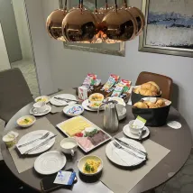 Номер очень подходит для семей. Здесь достаточно места для отдыха и развлечений двоих детей и двоих. Завтрак доставляют вовремя, а еды очень достаточно для европейских обслуживаемых апартаментов.