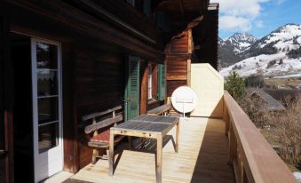 100 m2. More information by the provider: 5-room flat (100sqm) in a cosy chalet near the centre of Zweisimmen. 7 minutes walk from the train station and the Rinderberg gondola. Quiet and sunny location. The outdoor seating area directly in front of the kitchen and the large balcony offers a beautiful view over the valley and the mountains. The parking place is directly in front of the house. The washing machine (CHF 5.00) and the tumble dryer are available for common use. The holiday flat "Am Ryschbächli", which is offered by the same owners, is only 20m away.