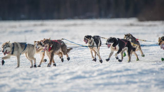 ▲ Местная жительница Аляски Лесли приглашает вас в захватывающее путешествие на собачьей упряжке! Пока вы ждёте своей очереди прокатиться, у вас будет возможность пообщаться с очаровательными собаками. Здесь вы лично ощутите безграничное удовольствие от скоростной езды по заснеженным просторам Аляски (продолжительность опыта около 20-25 минут)! Собаки в упряжке бегут парами: впереди идёт вожак, задающий направление, а ближе к саням располагаются самые сильные и выносливые псы. Два путешественника вместе с каюром размещаются в одних санях, которые несутся по лесной тропе, взметая белые снежные вихри — это поистине захватывающее приключение!