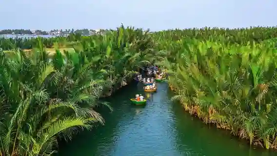 Отправьтесь на прогулку на лодке-корзине среди пышных кокосовых рощ, известных как "миниатюрный Дикий Запад", и насладитесь уникальным представлением на лодках-корзинах.