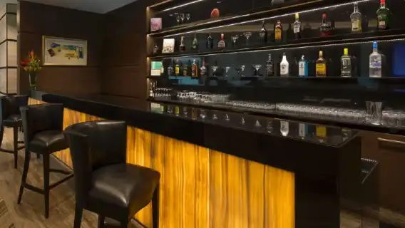 Современные удобства, комфортная и расслабляющая атмосфера — удобные кресла, бесплатный Wi-Fi, информация о рейсах в реальном времени, а также развлечения, такие как большие экраны телевизоров.