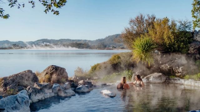 ▲ Расположившись на берегу озера Роторуа, вы сможете расслабиться в многоуровневых термальных бассейнах. Наслаждайтесь живописными видами озера и гор, переходя из теплых термальных источников в прохладный бассейн у озера, и испытайте уникальное оздоровительное путешествие у воды.