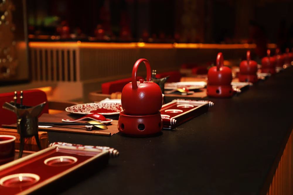Вдохновляясь классическими источниками, это место искусно оформлено как величественный императорский комплекс. Алые дворцовые ворота, позолоченные загнутые карнизы и изысканно резные колоннады обрамляют пространство, а ковры с облачными узорами украшают полы, а нежные шелковые драпировки парят над головой — всё вместе переносит гостей в эпоху, где «каждый шаг открывает новый вид, а каждый вид вызывает восхищение».
