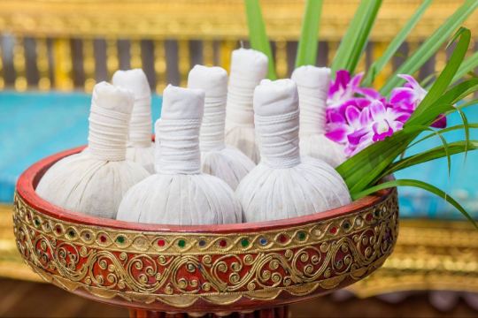 Тайская травяная тепловая терапия с использованием органических трав помогает контролировать воспаление и способствует расслаблению мышц. Массажисты используют специальные горшки для снятия боли в теле.