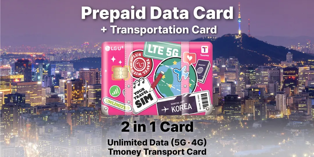 [Южная Корея] LG U+ карта «два в одном»|Безлимитная SIM-карта 4G + транспортная карта Tmoney|3-60 дней|Получение в аэропортах Инчхон, Гимпо, Сасанг-гу / Аэропорт Кимхэ
