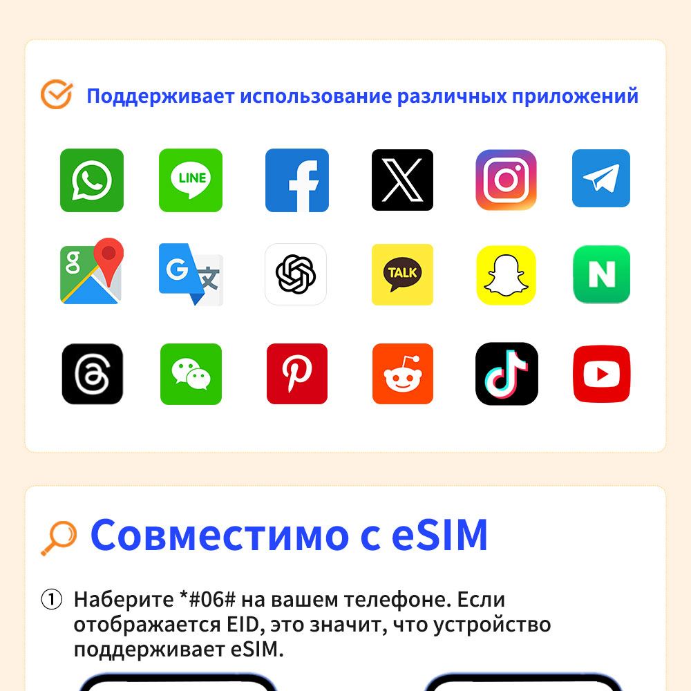 Устройство должно поддерживать функциональность eSIM: на экране набора номера наберите *#06#. Если отображается EID, устройство поддерживает eSIM. Если EID не отображается, eSIM использовать нельзя.