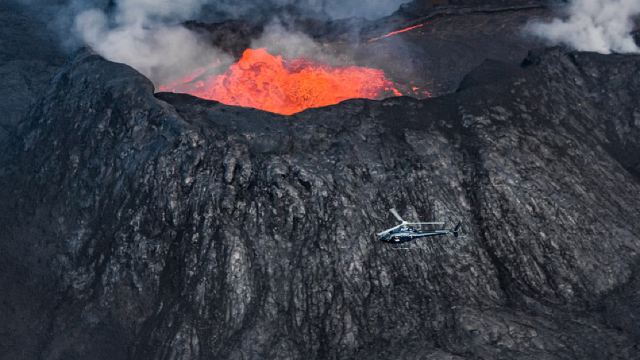 Пример маршрута: Вы отправитесь из Рейкьявика на вертолете и в течение 45-60 минут будете летать над раскаленным полуостровом Рейкьянес в Исландии. Вы пролетите над местами извержений вулканов 2021-2025 годов, активными геотермальными зонами и обширными лавовыми полями, а затем облетите Голубую лагуну. После подтверждения безопасности пилот совершит посадку на лавовом поле — это уникальная возможность ступить на новую землю Исландии. Этот вулкан является природным чудом, и мы не можем гарантировать, что во время экскурсии вы увидите лаву.