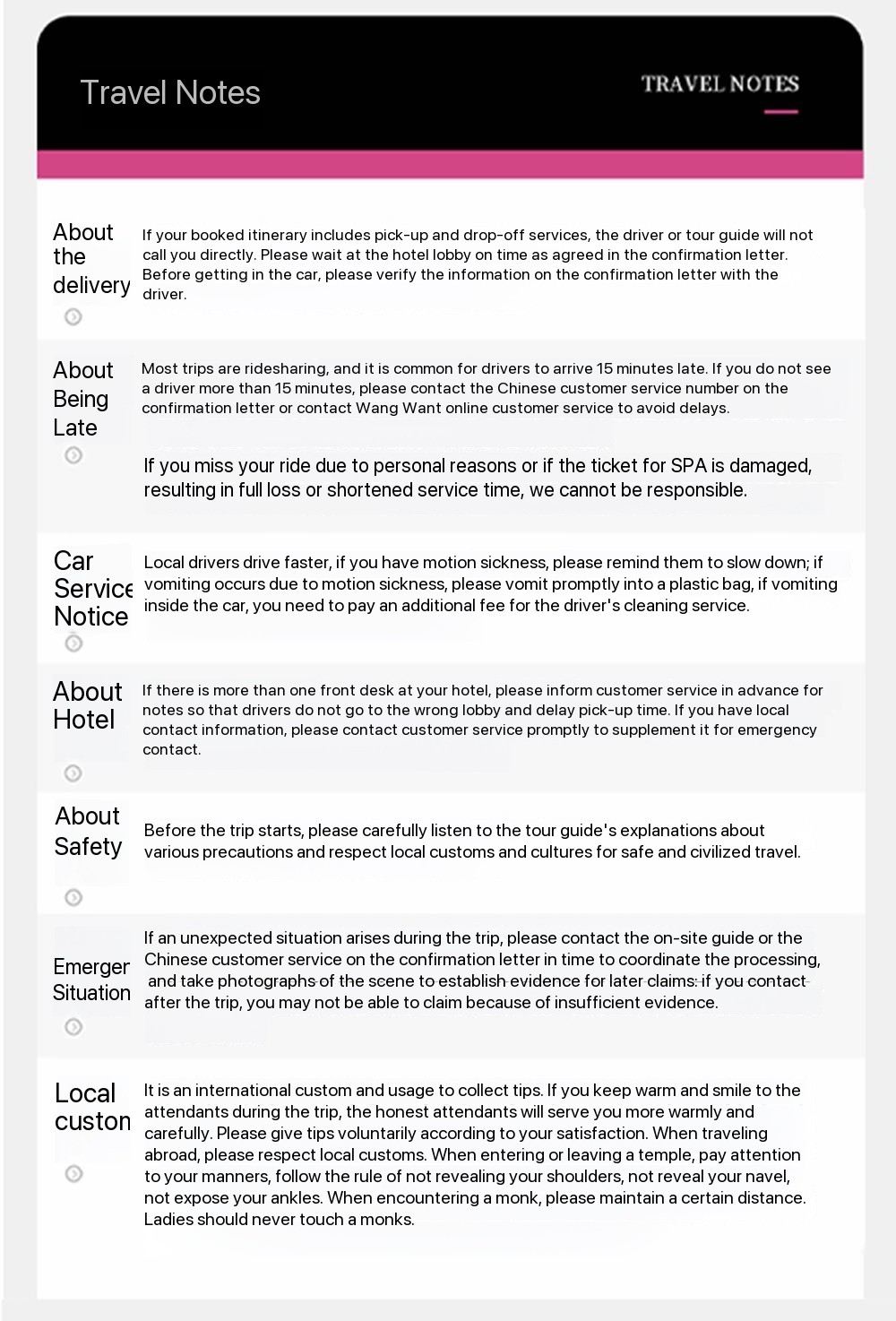 ❸Поскольку это коллективная подача, если предыдущий пассажир опаздывает, вам, возможно, придётся подождать 15–30 минут. Пожалуйста, проявите терпение, и мы обязательно вас заберём.
