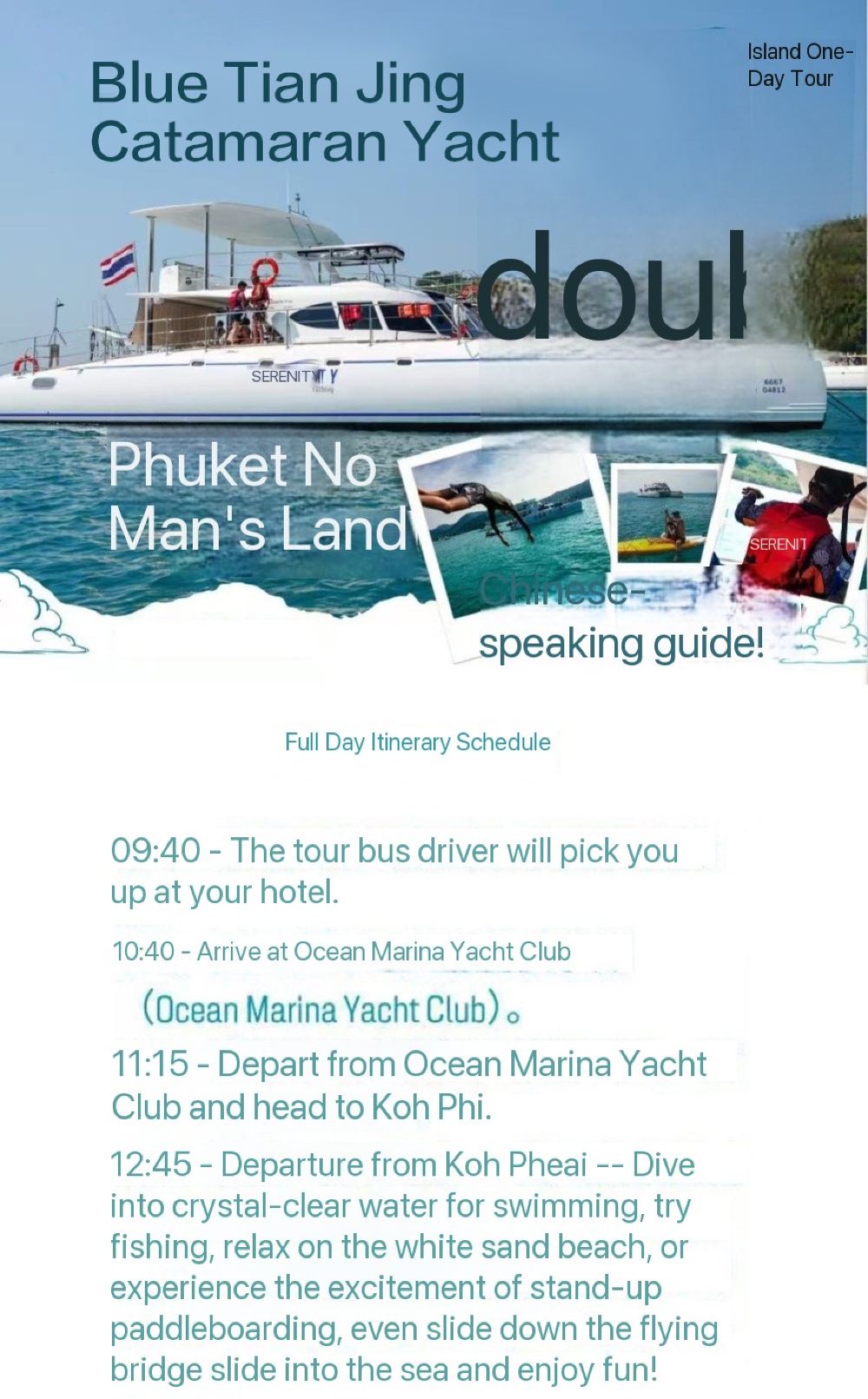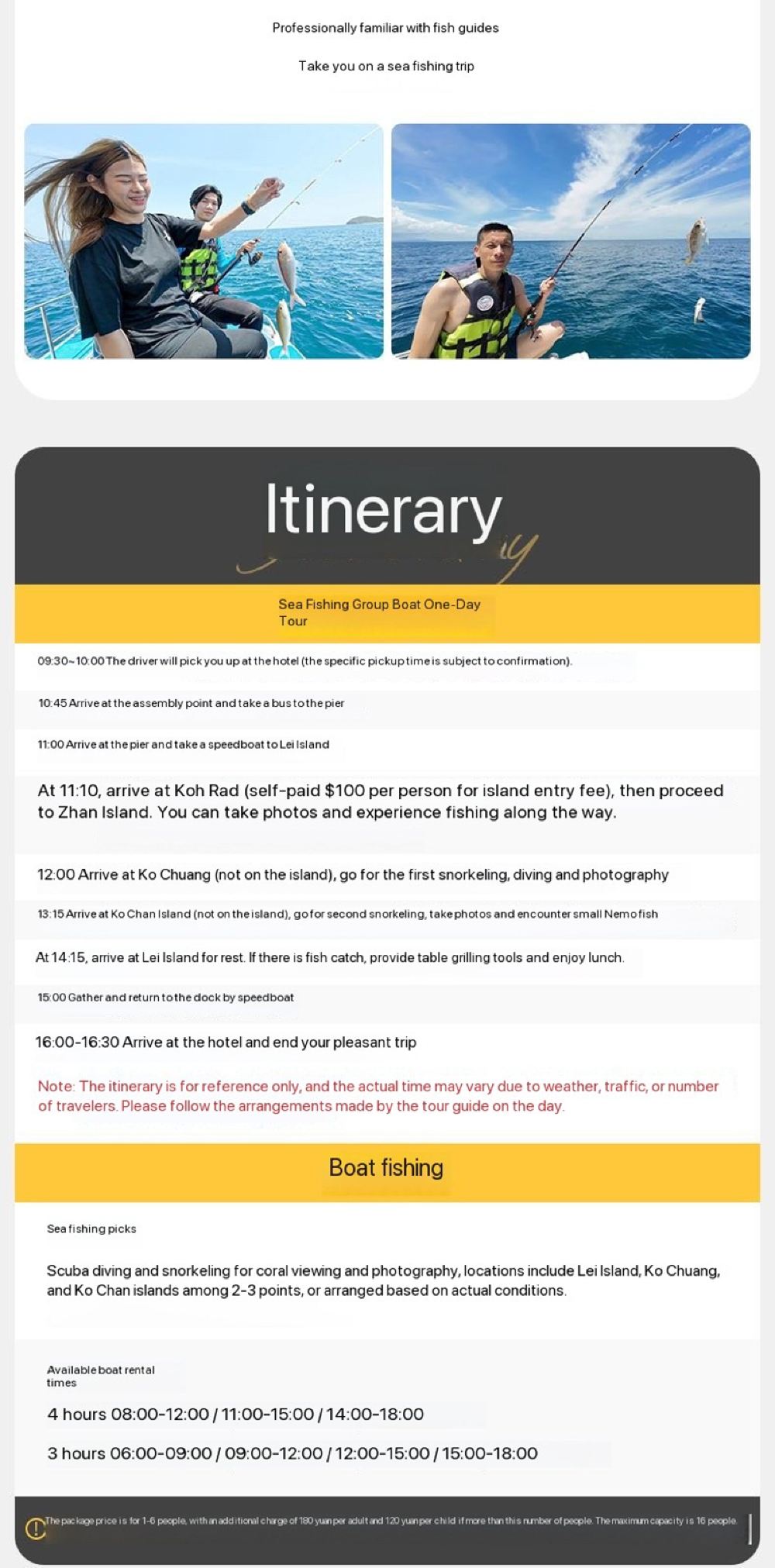 ❹По прибытии на пирс обратитесь к сотруднику, чтобы проверить форму подтверждения и выдать браслеты или наклейки. Одинаковый цвет означает, что вы на одном судне. Экскурсовод позовёт вас собраться в назначенное время. Экскурсовод отвечает за организацию дневного маршрута. Если у вас возникнут вопросы, вы можете обратиться к экскурсоводу.