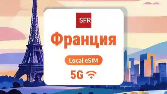eSIM 5G (Франция, SFR) | Локальная сеть, без роуминга | 1–30 дней | Мгновенный QR