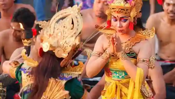 Посмотрите танец кечак, один из трёх главных танцев Бали. Мужчины с голым торсом собираются вокруг костра и исполняют эпическую поэму «Рамаяна», используя только звуки своих голосов. Вы окунётесь в фантастический мир этой истории.