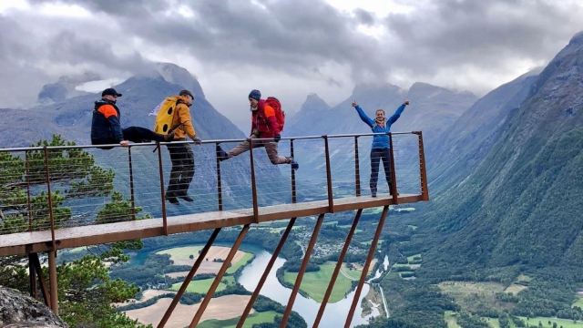Посетите смотровую площадку Rampestreken, поднявшись по канатной дороге или ступеням Romsdalstrappene