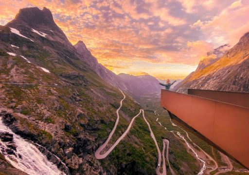 Отправление из Осло, Бергена, Олесунна или Ондалснеса. Комфортное путешествие по региону на поезде, круизном катере по фьордам и автобусе. Уделите время исследованию разных направлений и добавьте по пути развлечения и ночёвки, чтобы создать своё уникальное путешествие. Этот тур включает круиз вдоль западного побережья Норвегии по фьордам с заходом в знаменитый Гейрангер-фьорд. Маршрут проходит мимо крутых скал, традиционных горных ферм и живописных водопадов. Закат на Тролльстигене — объект ЮНЕСКО Гейрангер-фьорд и Тролльстиген, Ондалснес — Норвегия. Дорога по Тролльстигену — это горный серпантин с 11 крутыми поворотами, поднимающийся вверх, где можно сделать несколько остановок для любования видами. Приготовьте фотоаппарат.