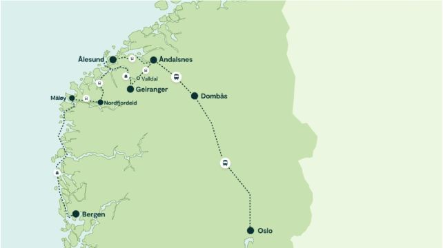 место отправления: Осло, Берген, Тронхейм, Ондалснес или Олесунн