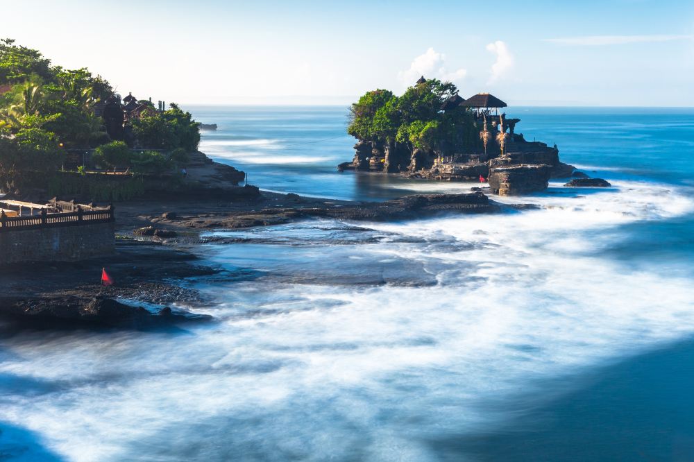 ▲Насладитесь захватывающим закатом, где солнце встречается с океаном у Пура Танах Лот — почитаемого храма морских богов Бали.