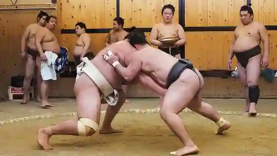 Утренняя тренировка борцов сумо – район Сумида в Токио