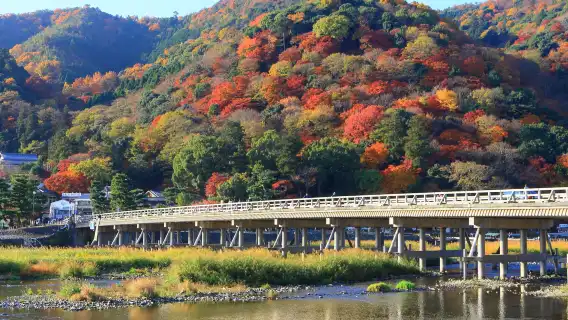Прогуляйтесь по Арашияме, наслаждаясь живописными природными пейзажами, где тихие берега переплетаются с уединенными бамбуковыми рощами.