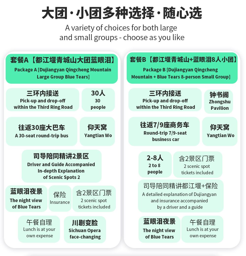 ◆ Дуцзянюань + Гора Цинчэн + ночной вид «Голубые слезы», однодневный тур с шоу «Смена лиц» (нематериальное культурное наследие) + памятная банкнота (нематериальное культурное наследие)
