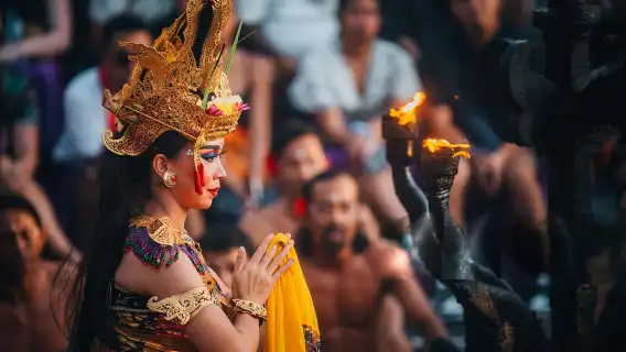 Посмотрите танец кечак, один из трёх главных танцев Бали. Мужчины с голым торсом собираются вокруг костра и исполняют эпическую поэму «Рамаяна», используя только звуки своих голосов. Вы окунётесь в фантастический мир этой истории.